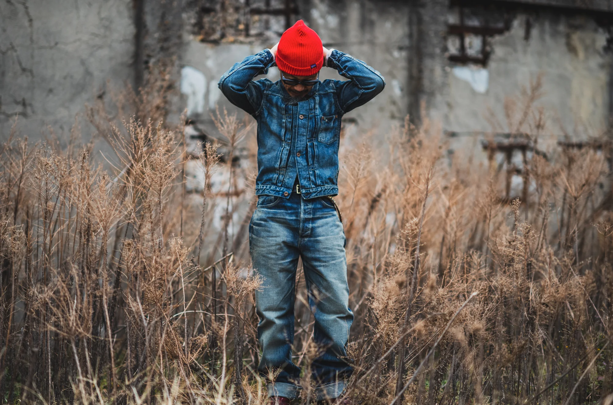 This time, we approached RYOTA of Bito Co., Ltd., a young up-and-coming designer we hope will lead the next generation. His workshop is always decorated with vintage pieces with various beards, and he draws inspiration for the beards and distressing he creates from these pieces as he works on each pair.